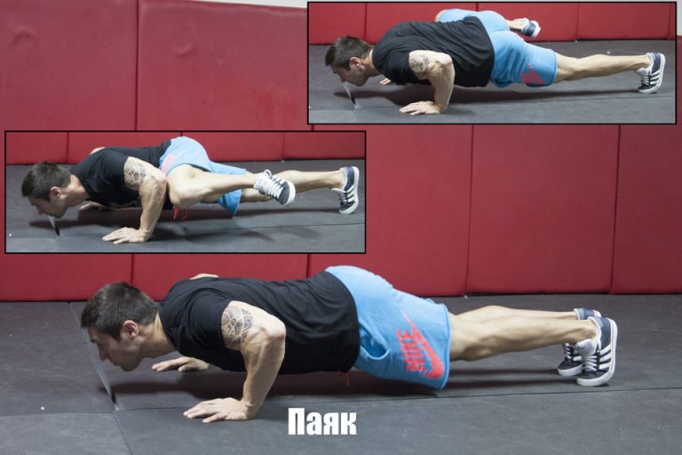 - Дланите и стъпалата докосват пода като тялото е в права линия (позиция лицева опора).