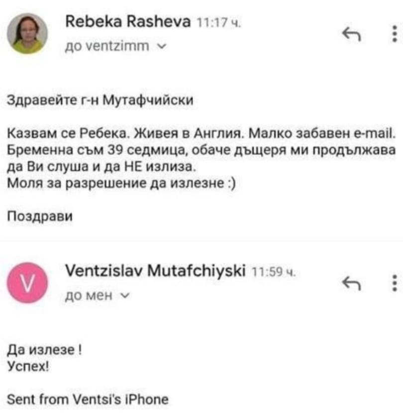 Такъв мейл вече се разпространява в социалните мрежи. В него млада жена с чувство за хумор пише до началника на Оперативния щаб, съобщавайки, че въпреки, че е в 39 седмица, бебето й отказва да излезе, тъй като се страхувало от забраната на генерала.