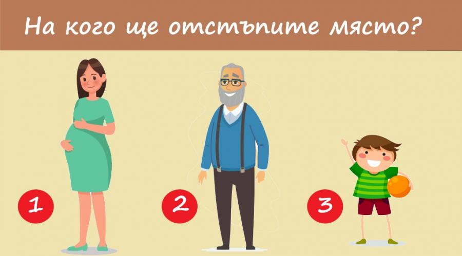 Представете си, че се намирате в градския транспорт. Настанили сте се удобно и се готвите да отворите любимата си книга. Изведнъж се кчават трима души - бременна жена, възрастен мъж и малко дете.