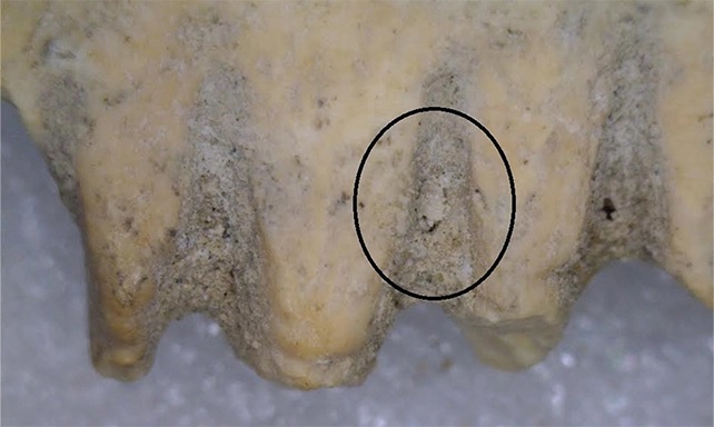 Изследователите дори откриват, че един от по-фините зъби съдържа твърдата външна част на въшка (на снимката по-долу). Това не е най-старото доказателство за съществуването на главови въшки – някои проби, открити в човешка коса, датират отпреди най-малко 10 000 години, но то подсказва, че дори богатите ханаани са били тормозени от тези малки гадинки.