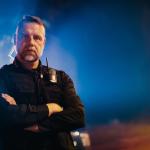 На вратата се звъни. Момченце отваря и вижда полицай.