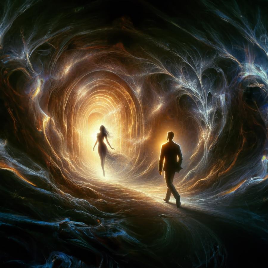 Лора се замисли. Оформи тунел, на края на който се виждаше светлина. На фона на светлината сложи женски силует.