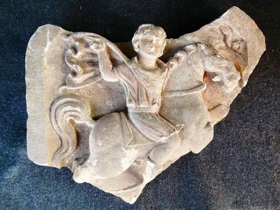 Изображение на Артемида върху мраморна оброчна плочка и теракотен сатир от свитата на Дионис са сред последните находки от разкопките в Хераклея Синтика.