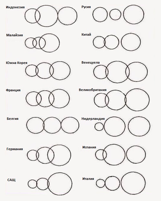 Психолози провеждат интересно изследване, по време на което анализират тестовете на хора от различни страни и континенти. Най-равномерни се оказали резултатите при жителите на Европа: по-равномерните кръгове се разполагат един върху друг, сякаш подкрепят съседния кръг. Специалистите обясняват това с финансовата стабилност на европейските държави, чиито жители са уверени в бъдещето, сравнително доволни от настоящето, уважават и почитат историята.