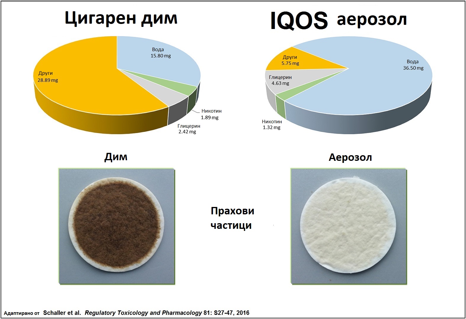 Както потребителите, така и в научната общност се вълнуват от въпроса какво точно се съдържа в парата от IQOS и има ли нещо друго, което го няма в състава на цигарения дим.