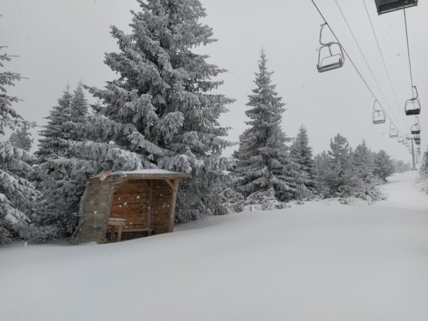 Беше ясно, времето – меко. Беше трупало цяла нощ и снегът достигаше до над коленете ми. Тръгнахме по безкрайната бяла и неутъпкана пътека. С нас – и Боби, едно от кучетата, които ни посрещна на идване. Голям симпатяга. Вървяхме бавно, предимно заради мен, и си се наслаждавахме на красотата наоколо. Боби понякога изчезваше, скоро пак се връщаше. Полягваше в снега, чакаше ни. Почиваше си. Не помня колко време ни отне да се качим, но със сигурност повече от два часа. Пътят се движи под лифта. С изкачването времето ставаше по-неприятно, а когато стигнахме до станцията на лифта, не можехме да видим хижата от мъгла. Затова решихме, че няма да ходим до което и да е от езерата, а по-скоро ще хапнем в хижата, ще пием по един чай и ще се връщаме обратно.