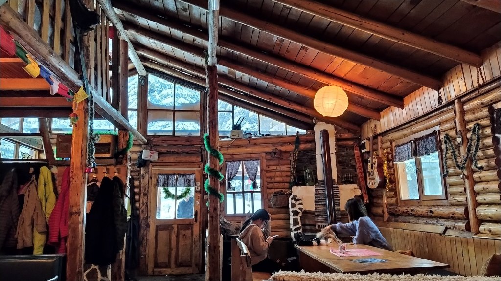 Обядвахме. Не съм очарована от каквото и да е в хижата-хотел. Храната беше студена и доволно солена откъм цена. Факт обаче е, че я имаше. И безспорно – има къде да се стоплиш.