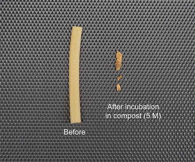 Друг етап е тестването на скоростта на разграждане на новата пластмаса: при идеални условия на компостиране, които събуждат бактериите от тяхното спящо състояние, 90 % от пластмасата изчезва за пет месеца. Хубавото е, че определено ниво на разграждане може да настъпи и при по-малко идеални условия.