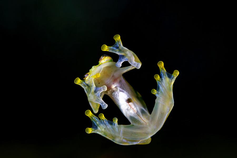 През деня тези нощни жаби спят, като висят под листата на дърветата. Техните деликатни, зеленикави прозрачни форми не хвърлят сенки, което ги прави почти невидими за птиците и други хищници, преминаващи над или под тях.