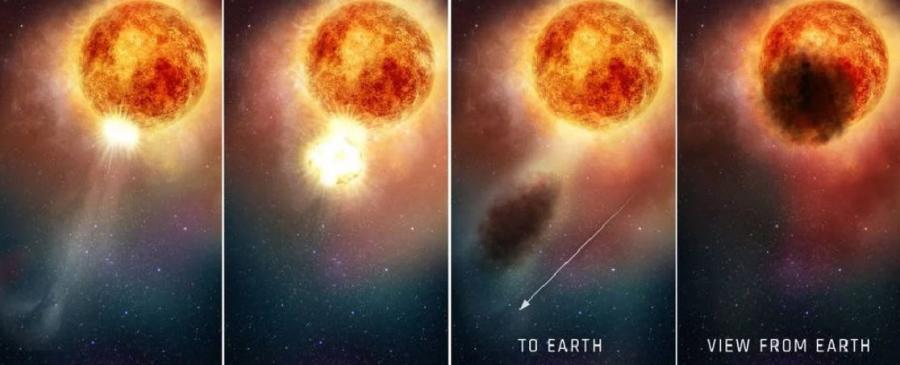Внезапното потъмняване на Бетелгейзе – една от най-ярките звезди на небосклона – вероятно е вследствие от облак прах, изхвърлен от нейната повърхност.