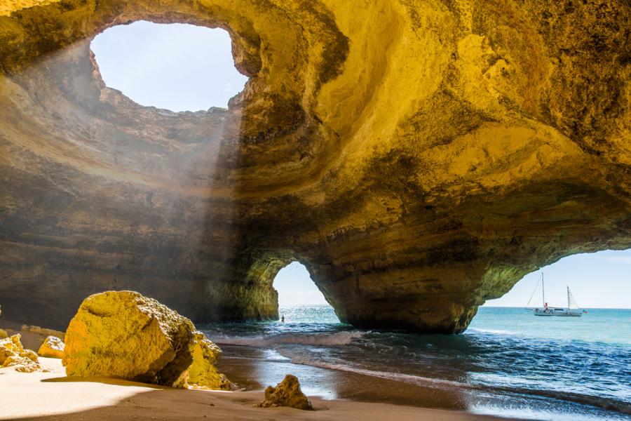 Морската пещера на Бенагил в Португалия е една от най-красивите и фотографирани пещери на света. Забележителното скално образувание, което може да бъде достигнато единствено по вода, привлича туристи от цял свят. През широкия и кръгъл отвор в тавана на пещерата вие можете да зърнете ясните сини небеса, докато лежите на мекия пясък и се наслаждавате на нежния полъх на вятъра.
