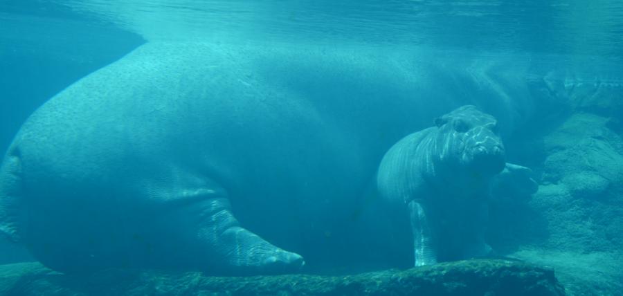 Ето какво прави едно бебе хипопотам под водата
